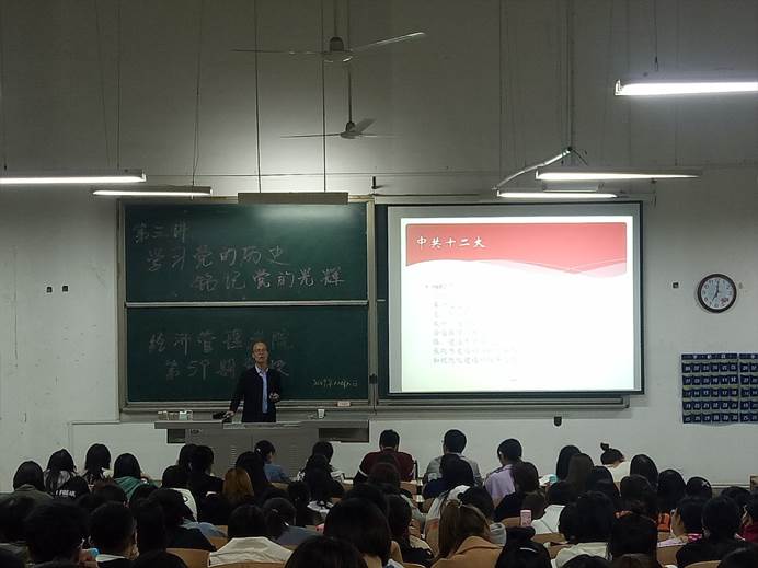 10月10日晚7时,ballbet贝博第五十九期党课培训第三讲“学习党的历史,铭记党的光辉”于教3-217教室顺利开讲,本次主讲老师公司党委副书记程新峰为260余名党课学员进行指导及授课。
