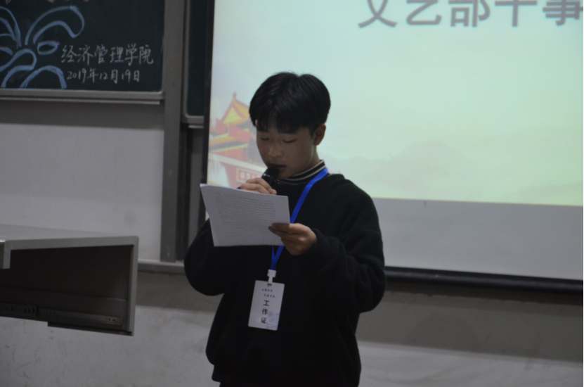 为回顾和分析过去一学期工作学习情况,从中总结经验和教训,确认入学以来的情况概述、成绩、存在的问题及今后努力方向。ballbet贝博于2019年12月19日晚18:30在教1-101顺利召开2019-2020学年第一学期团学组织总结暨表彰大会。出席本次大会的嘉宾有:ballbet贝博团委书记许金鑫老师,以及团学组织主席团。共计150余名员工干部参与本次大会,办公室干事张梦驰担任此次会议的主持人。