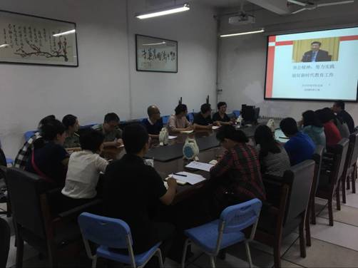 公司党委于9月14日早上在教5-520召开学习关于“习近平总书记在全国教育大会上讲话”的中心组学习,此次学习由党委书记曹玉玲主持,领导班子与各支部书记都一同参与讨论。