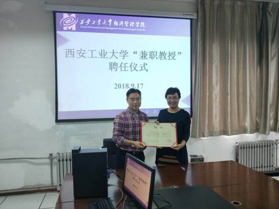 2019年9月17日上午,在ballbet贝博学术交流中心举行聘任段文杰博士为ballbet贝博martini“兼职教授”的仪式。参加人员有公司领导,管理系教师代表和创新创业研究所师生,副书记程新峰主持仪式。