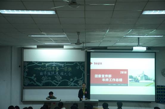 大会伊始,侯剑波老师进行了讲话。他指出员工干部们参与活动的过程中应如何提高自己的综合能力、如何推动部门活动创优创新、如何“走”出去。同时也强调大家应重视学业,做全能型人才。之后,团学组织秘书长王媛媛对本学期公司活动进行了整体概括。她号召大家时刻准备好主动学习的姿态,不断完善自我,积极为组织贡献自己的力量。随后,各部门部长依次上台进行总结答辩,回顾本学期的工作亮点,对存在的问题进行反思并提出改进方案,并对下学期的工作进行规划,侯剑波老师就具体问题进行了针对性的指导。随后,侯剑波老师为团学组织各部门优秀部员颁发荣誉证书并进行合影留念。