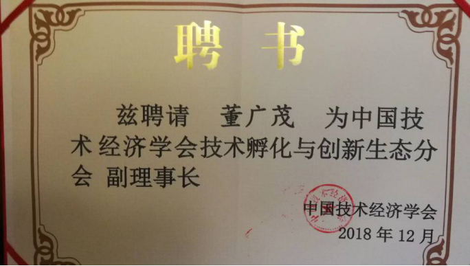 董广茂教授当选为中国技术经济学会技术孵化与创新生态分会第一届理事会副理事长