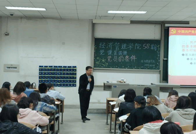 本次党课的主题为“党员的条件”。姜老师以问题“大家有没有写入党申请书?”开头引入了本次的主题。姜老师讲解了党组织对中国共产党员的总要求,其中包括“控制总量、优化结构、提高质量、发挥作用。”让同学们心中明白党组织对党员发展的要求,激励同学们以更严格的标准要求自己。姜老师讲述了入党的四个要求:1、年龄和成分的要求2、政治思想的要求3、组织纪律的要求4、缴纳党费的要求。通过姜老师细致的讲解,同学们清楚理解了身为员工党员应该履行的义务。随后,姜老师向同学们讲解了我国社会主义初级阶段的基本路线,党的十条基本经验,以及共产党员要坚持做到“两个务必”弘扬艰苦奋斗作风。通过本次的授课,同学们认识到应该以高度的责任感,强烈的使命感来做优秀的共产主义接班人,为党组织的壮大添砖加瓦。