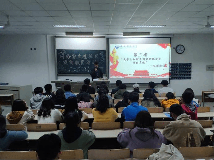 为强化广大同学的网络安全意识,保障个人信息安全,维护大家在网络空间的合法权益,ballbet贝博于2019年11月15日18:30于教2-310顺利开展“网络安全进校园”宣传教育活动。出席本次活动的嘉宾有ballbet贝博科学技术协会主席吴凡以及团学组织各部长,共计五十余名同学参与本次活动。办公室干事徐东霖担任此次活动的主持人。