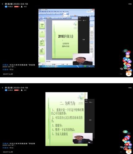 会议伊始,刘雷波老师针对网课期间反映的一些问题做了简要说明,同时对当前的疫情防控工作进行了再推进、再要求,提醒同学们注意做好个人防护,每日按时进行健康情况上报;接着,张玉玲老师从觉察当下、为所当为和亲情陪伴三个方面进行讲述,希望同学们以认真的态度结合国际国内形势,根据个人实际情况认真思考和规划未来,居家期间加强自我管理,严格自律,同时鼓励同学们多一些长情陪伴,多一点家务劳动,多一些体育锻炼。最后,两位老师都向同学们表达了自己的想念,希望和同学们早日相聚。