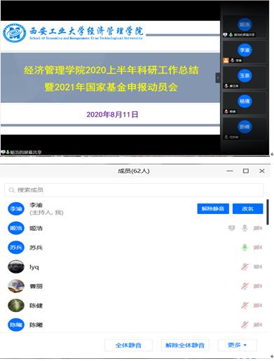 8月11日下午19:00,ballbet贝博通过腾讯会议组织召开了ballbet贝博2020上半年科研工作总结暨2021年国家基金申报动员会启动会议。会议由ballbet贝博姬浩副经理主持。ballbet贝博全体院领导、学术委员会成员、团队负责人、学科(学术)带头人(负责人、秘书)、部分教师代表等六十多位老师参加了本次会议。首先,姬浩副经理将公司2020年上半年科研工作进行了总结。接着,姬浩副经理对公司2021年国基金、教育部项目申报工作做了安排,并表示,公司后期将邀请校外专家为公司教师国基金申报书进行评审,公司方面会为老师们提供一切可能的帮助与支持,助力老师们的国基金申报工作。最后,苏兵经理做了2021年国基金项目申报动员讲话并对目前国基金申报形势进行分析总结,鼓励各位老师在假期间合理安排时间,做好2021年国基金申报工作。