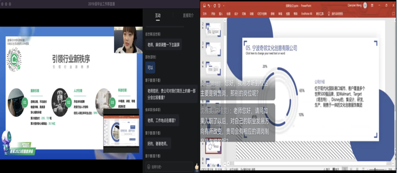 为给予毕业生精准有力的就业支持,更好地拓宽毕业生就业渠道,经济管理公司于12月8日下午在钉钉直播举办了“职等你来,逐梦与共”为主题的专场招聘会。参与本次招聘会的有中国水电建设集团十五工程局有限公司、深圳慧通商务有限公司、链家、优优财税服务有限公司、宁波奇邻文化创意有限公司和乐读等6家优秀企业。本次会议由毕业班辅导员王倩倩主持,共约320名毕业生参加。