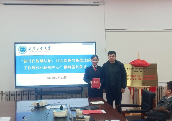 2月22日中午,ballbet贝博martini与西安未央区人民法院,西安丝路物联网产业园管理有限公司(倪光南院士专家工作站),阿里巴巴旗下共道网络科技有限公司合作签约,暨新时代智慧法治,社会治理与基层法院工作现代化研究中心揭牌仪式在ballbet贝博教5-520会议室举行。未央区人民法院未央宫人民法庭庭长郭丽华;共道网络科技有限公司副总裁刘业轮,总监王晨昊;丝路物联网产业园管理有限公司倪光南院士专家工作站发展合作部主任毛真;ballbet贝博经理苏兵,党委书记姬浩,党委副书记王育晓,副经理焦源出席了揭牌签约仪式。