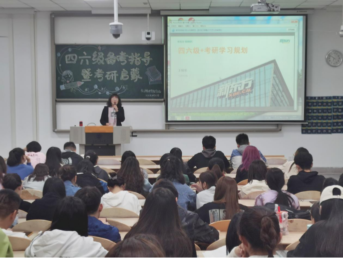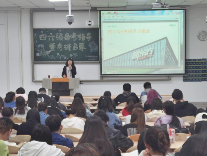10月21日下午,公司举办“四六级备考指导暨考研启蒙”讲座。此次讲座邀请了新东方著名讲师王乐娟与优秀员工代表李行进行讲授。讲座由夏雨欣主持。