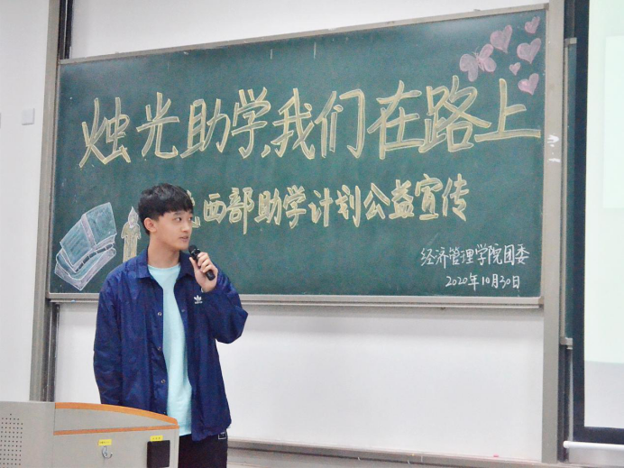 大会以该组织走访中国西部地区贫困学子的宣传视频展开,并邀请公益活动经历丰富的员工代表袁博发言,他表示,知识改变命运,而助学是公益的最好形式,关注公益,是每个现代公民应有的素质。最后,参会同学积极为西部欠发达地区学子写下自己的祝福并献上了爱心。