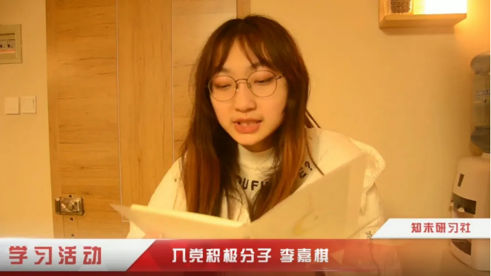 活动伊始,刘翔和刘网玥分别朗读了书中部分内容。随后,入党积极分子对书的内容进行了学习。最后,入党积极分子许堡森,尹飞澳,李嘉棋,王子睿,贺婉婷,武桂凤,方忠豪和鲁欢欢分别分享了自己的心得与感悟。
