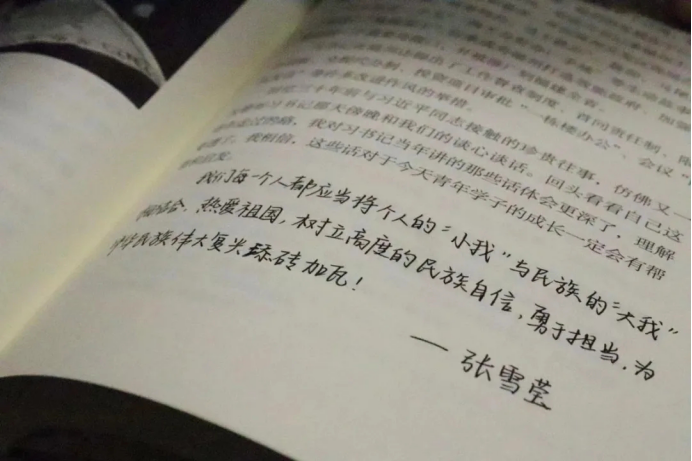 知未研习社组织入党积极分子再教育活动,以《习近平与老员工朋友们》为主要内容,引领广大入党积极分子向党组织靠拢。“不畏将来,不负现在;勇担使命,知行合一”刘网玥同学读完后在书本上写下了这样的箴言。