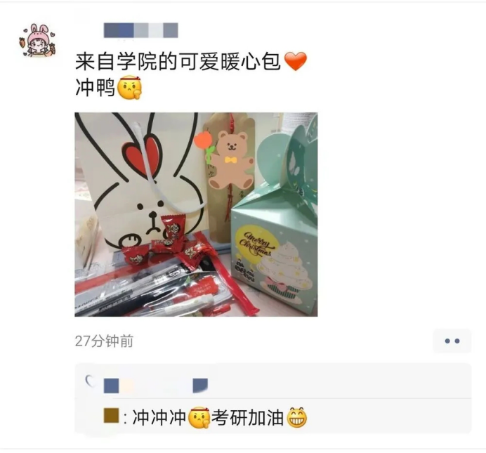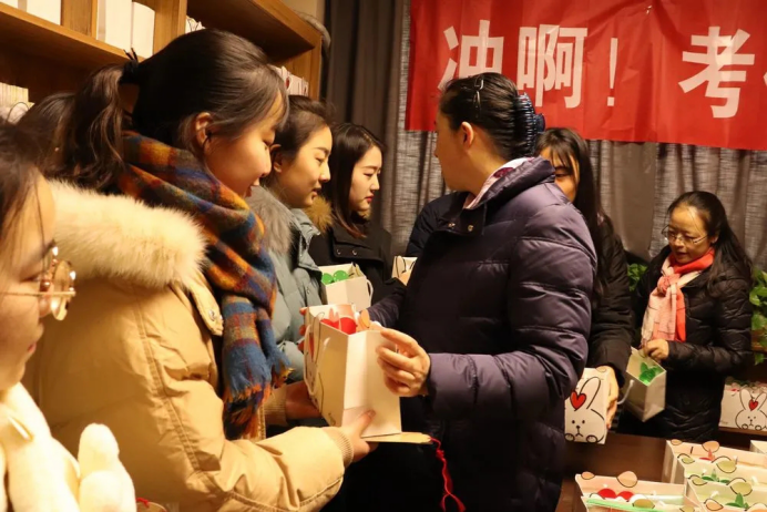 公司辅导员先后走进公寓,亲手将爱心包送到员工手中。学子们收到爱心包之后纷纷发朋友圈表示深受感动,感谢公司的关心和关爱,一定会认真备考,考出满意的成绩!