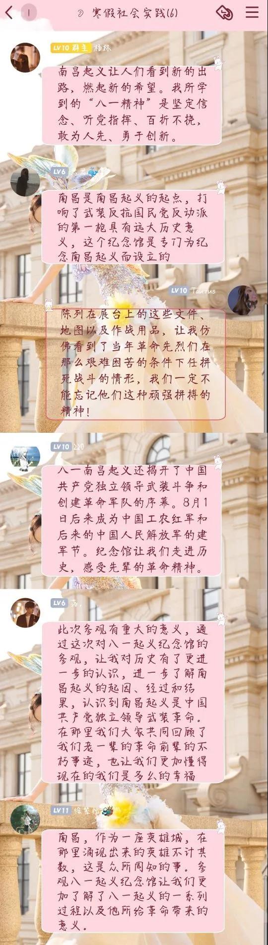 最后,实践队员与各地前来参观学习的游客们进行交流学习。其中,一位游客说道:“追求理想的付出和坚定信念是可贵的,没有烈士的流血,就没有今天的幸福生活。”引得实践同学们产生了深深的共鸣,大家在实践团队群中分享了自己的心得和感悟,将南昌起义精神和中国革命先辈的光荣事迹铭记于心,秉承光辉历史,立志在继往开来的伟大时代贡献自己的青春力量。