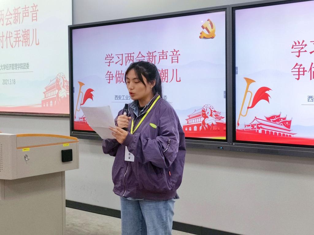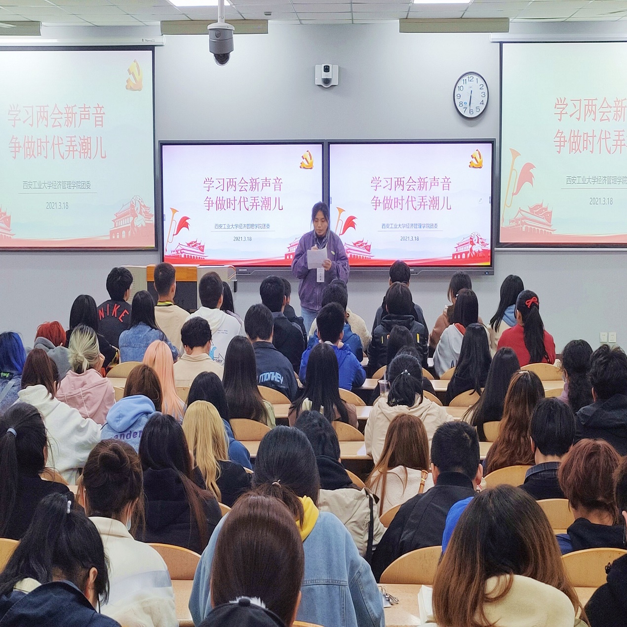 3月18日晚,ballbet贝博团委在教2-201开展以“学习两会新声音,争做时代弄潮儿”为主题的活动,让两会精神进校园,推动校园精神文明建设。本次活动由康怡主持。