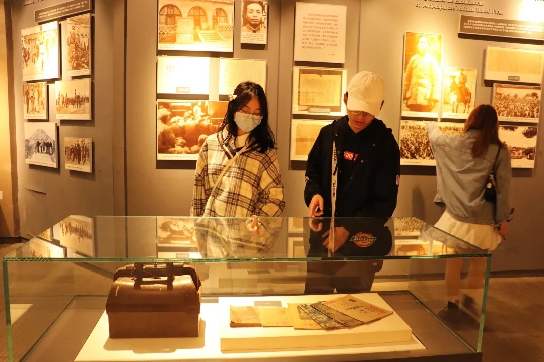 随后的参观学习中,全体成员观看了西安事变的照片、实物,更加直观和深刻地了解和认识西安事变发生的起因、经过、结果。展柜里陈列的真实且珍贵的历史瞬间,冲击着每一位同学的心灵。站在建党百年开启新征程的历史起点上学习党史,从中体会革命道路的曲折和胜利的来之不易,感受革命先烈崇高的精神境界和理想追求,坚定了同学们永远跟党走的理想信念,也让同学们鼓起迈进新征程、奋进新时代的精气神。进入主展厅,顶部悬挂着“停止内战,联共抗日”的横幅,耳边仿佛也响起了当年爱国革命人士们呐喊着的口号、眼前浮现了张学良和杨虎城将军为了联共抗日事业努力的场景。