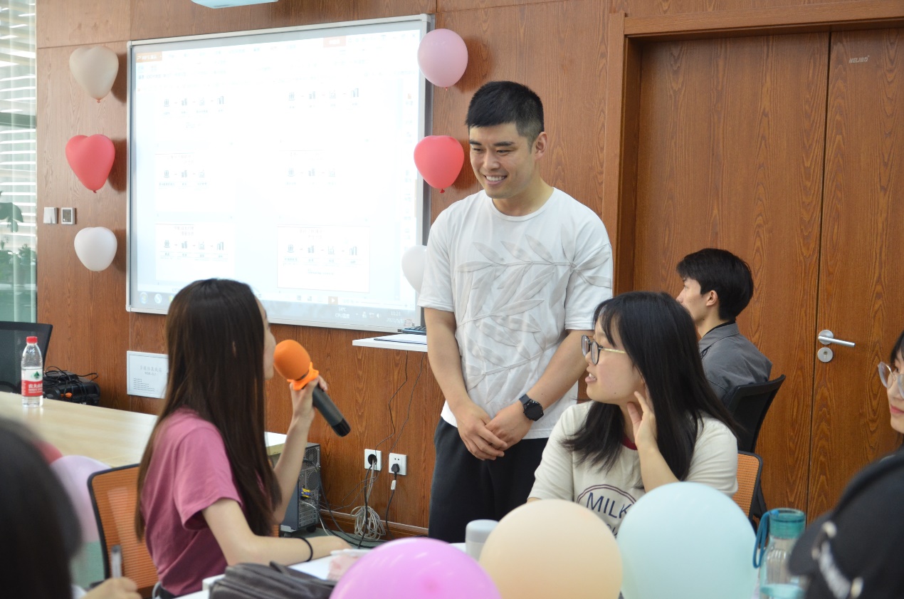 紧接着,许川引导同学们参与“裸心会谈”和“优势大转盘”两项心理游戏。在裸心会谈中,他鼓励同学们以十年为一个周期,敞开心扉讲出自己过去二十年难忘的故事,在自我表达与分享中回顾自己的人生、倾听别人的心事。在“优势大转盘”活动中,许川引导同学们讲出自身优势,并让同学们相互指出彼此的优点,进一步拉近了同学们之间的关系。