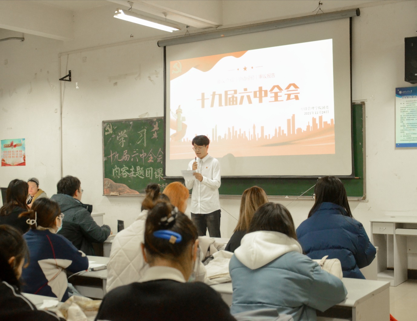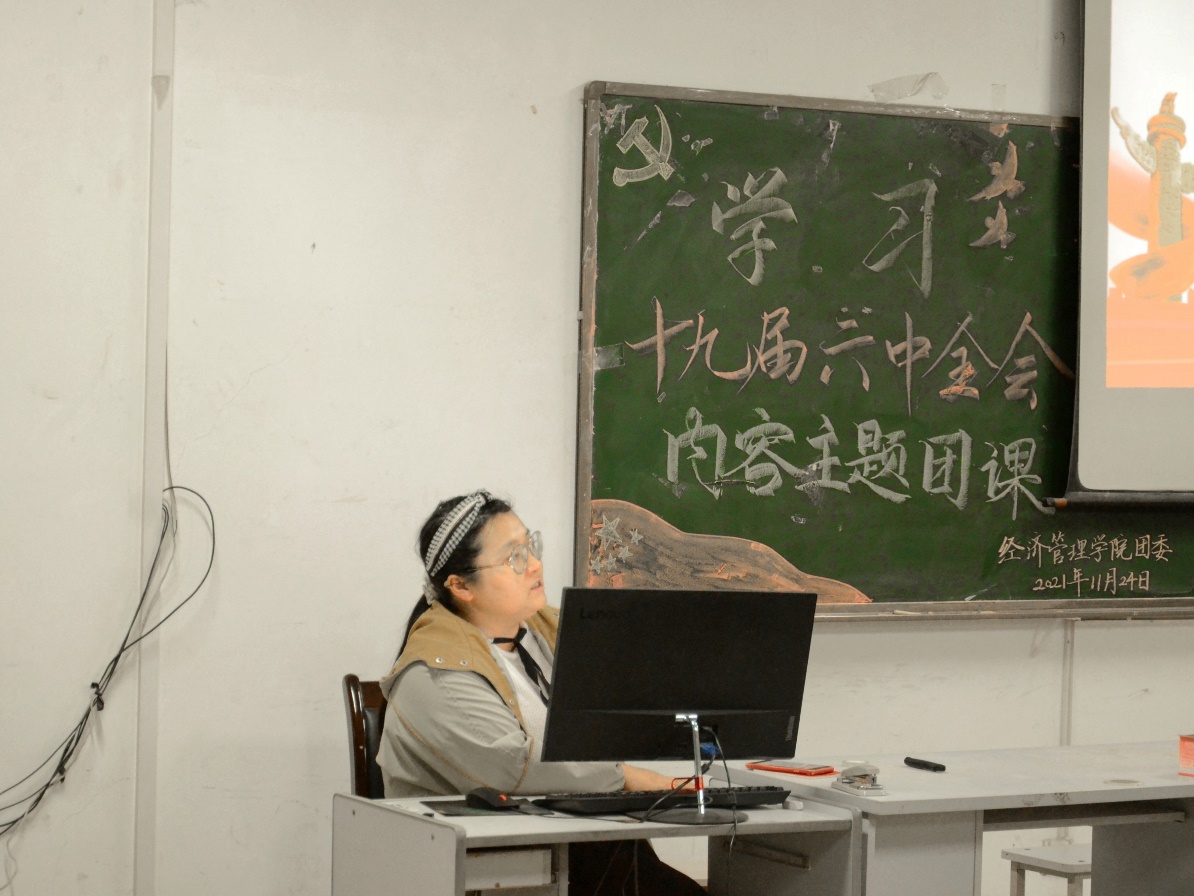 11月24日,ballbet贝博学习十九届六中全会内容主题团课在教5-506召开。由ballbet贝博邵欣老师领学。唐绎人主持。