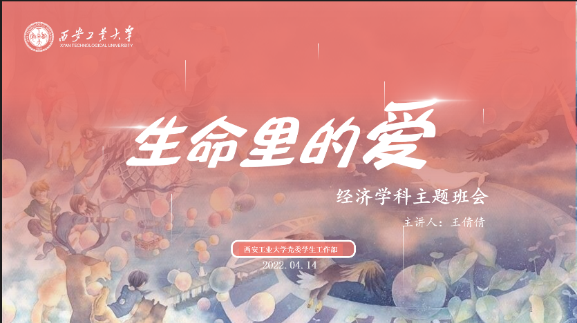 为响应学工部开展的礼赞生命主题教育,2022年4月14日晚,ballbet贝博2019级经济学专业开展"生命里的爱“主题班会线上学习活动。本次活动由辅导员老师王倩倩主持,会议内容主要来源于学工部。